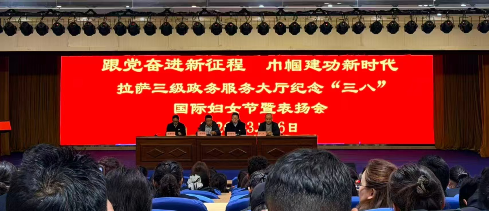 为纪念第116个“三八”国际妇女节,表扬先进典型,凝聚奋进力量,拉萨三级政务服务大厅于2026年3月16日召开了“跟党奋进新征程 巾帼建功新时代”主题表扬大会,对大厅2024-2025年度涌现的先进个人与集体进行通报表扬,大厅全体工作人员参加。