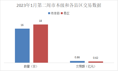本周完成市本级交易项目16宗,交易金额0.86亿元;县区项目交易18宗,交易金额0.62亿元。