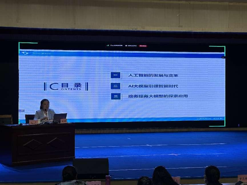 赵瑞同志以“AI在政务服务领域场景应用经验做法”为主题,从人工智能的发展与变革、AI大模型引领智能时代、政务服务大模型的探索应用三个方面,深入浅出地介绍了AI大模型的应用趋势,现场演示了在AI大模型输入“介绍布达拉宫”主题后,AI大模型生成文本、给出摘要、数值计算、创作图像等功能,并讲解了政务服务大模型的探索应用--政务场景分类(一网通办、一网协同、一网统管)、政务服务大模型场景扩展(大模型赋能接诉即办数智化提升、大模型一站式调度、人工智能大模型监管沙盒在数据合规训练下的应用)等内容。